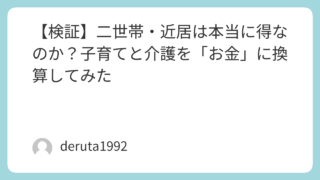 子育て・介護メリットを“お金”に換算してみた前回の記事では、減築はコスパ面では不利になりやすいという現実を、解体費と土地売買の観点から整理しました。「じゃあ、なぜそれでも近居を選んだのか?」今回はその続編です。感情論になりがちな「近くに住む...