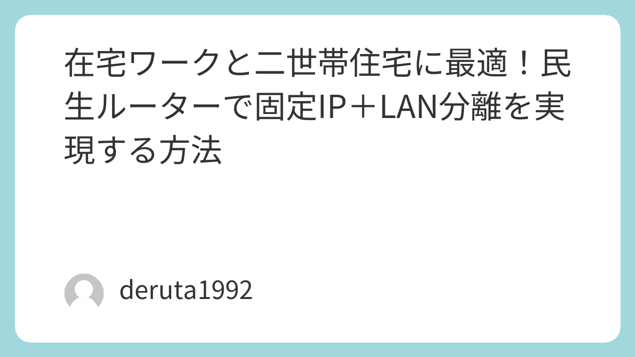 在宅ワークと二世帯住宅に最適!民生ルーターで固定IP+LAN分離を実現する方法